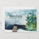 Tre statsägda grönt träd står på sjö kant mot en färgad i akvariet himlar som är prickad med snöflingor. Hälsning på helgdag nya adress annonseringskort lyder: "God jul från vårt nya hem." Du kan ändra både den här texten och all text på baksidan av kortet med hjälp av anpassningsmallen före utcheckningen. I vår Helgdag Announcement Collection finns även denna ändring av adress-designen på ett vykort.