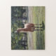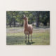 Min originalkonst pryder detta roliga djurpussel, bestående av mitt originalfoto av ett stort lama-djur på en gårdsbetesmark, stiliserat med en mild illustrerad målerisk teknik för ett konstnärligt utseende.