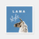 Lama porträtt om blå bakgrund och vit text "Lama Stil"