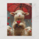 Lamb med paraply i Rain som håller ett hjärta Vykort