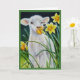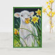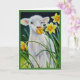 Lambebarn och vårdaffodil vattenfärgskonst kort