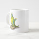 Illustration av en Lambeosaurus som står på en vikt medan glassen hålls bakom ryggen.