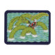 Herr John Lambton konfronterar med den avskyvärda Lambton Mask i vatten i Bäran vid floden i denna originalteckning som inspirerats av den engelska förklaringen.