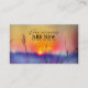 affärskortet affärskort scripture visar en vacker vattenfärgsmålning med en enkel orange och gult soluppgång över ett dimmigt blått fält. Den innehåller en uppmuntrande bibellyktning 3:23, "Hans meriter är nya varje morgon".