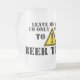 Det är den perfekta roliga grumpy dagölmuggen! Inte upplagt att tala till någon? Önska folk stag som är klart av dig? … är denna muggen för dig! Presentera triangeln formad gult- och svartvarning underteckna med en utrop pekar insida, och ord, "lämnar mig ensam. Jag förmiddagen som talar endast till min öl" runt om den i en sätta en klocka på coola, stencilerar i dag stilsorten. Välj från många muggstilar och färger och hastigt grepp din grumpy mugg i dag!