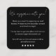 Lämna oss en granskning | Kundfeedback | Tack Black Affärskort Express tacksamhet och uppmuntran till värdefull feedback från kunderna. Det här fyrkantiga affärskortet har en skarp "Tack" och uppmanar kunderna att "Lämna en granskning".