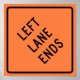 zon varningsskylt om vägbygge och vägbygge i internationell som visar att det lämnat körfältet kommer att upphöra.