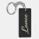 Ein sehr schöner edler personalisierter Schlüsselanhänger im whitegold Lettering Look auf schwarz für Lance.