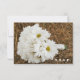 En bröllop OSA med ett foto av en daisy bukett som vilar på en hö.