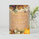Den vackra rostiga orangen och mörkens burgundära höst faller blommor och pumpar gräns med vintage kräm snöre över en beige-burk som bakgrund skapar en charmerande ny inbjudan till hem-/husuppvärmning med ett trendig handskript för guld typografi. +++++++++ Enkel att anpassa med dina uppgifter! Lämplig för hösthöstfallsskorpa | LAND | Jordbruksföretag | Bakgård utomhus som firar barber.