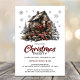 Inbjudan dina vänner och din familj till er jul firande i år med denna inbjudan som har en rustisk land-hytt på en snövinterdag.