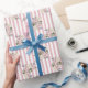 Land Chic Rosa stripe Bukett med rosor monogrammad Presentpapper