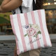 Land Chic Rosa stripe Bukett med rosor monogrammad Tygkasse