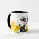 Det här keramiska kaffet mugg visas med en söt land-ko och solblommor. Anpassa det här objektet eller köp som det är.