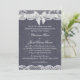 Westerna land snöre och denim bröllopsinbjudan med tryckt vit bukgrafik. Anpassa text som önskad. Alla delar av den här designen är en utskriven bild.