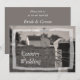 Inbjudan gäster till era kommande landsbygdsbor med den charmerande inbjudan till jordbruksbröllop i Land. Den här avslappnaden, som ändå är klassad anpassningsbar ranch giftermål inbjudan, har ett fyrtonigt sepiafondsfoto av ett gammalt cementstängsel med taggtråd och en vit lada i avstånd över en skugga.