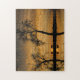 Det här är ett vackert pussel och lite utmanande också! Två hästar som betar i en vacker solnedgång med ek träd och fåglar. De återspeglas i en damm i vatten.