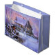 Söt, vintage Winter scen av ett härligt hem i land. Text och teckensnitt kan ändras efter behov. Ändra texten så att den läser något personligt, namn monogram eller initial.