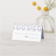 Monteringskort för Land Lavender Bröllop. Designad med lila handmålade lavender-blommor med vattenfärgstrypning. Det här är ett platskort för vår, sommar och utomhus bröllop för stil i land. Anpassa den här designen med din bröllop-date och brid och din grupps namn på baksidan och bord på framsidan. Bakgrunden färg är vit, men du kan välja en fyllning färg efter eget val.