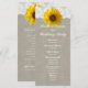 Den här vackra vintagen stil har en enkel mall som gör att du kan fylla i bröllopsfesten på ena sidan och ceremonin på den andra. Vintage stil vit snöre på linne, med en glad gult solros. Klicka på knappen Anpassa om du behöver ändra något. OBSERVERA ATT ALLA INSLAG ÄR TRYCKTA EFFEKTER - det finns ingen egentlig linne.