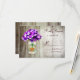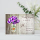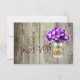 Mason Burk Barn Wood Bröllop OSA Cards Dessa makron, burk och lila, blommor i bröllop OSA är perfekter för land stil bröllop i med lila blommor i bröllop i färg. Mason burk är mot en rustik lingbakgrund. Det har också ett gediget trähjärta på framsidan av Mason burk. Här är matchande inbjudan till bröllopsinbjudan för anpassningsbar land stil: