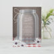 Inbjudningar: Rustic och vackert södra land inbjudningskort för möhippa med en illustration av en Mason burk med tvillingor bundna runt nacke, vita och lila daisy som ligger vid burk, en vit och röd gingham-bord överst, över en vintage brun bakgrund. Din duschinformation finns i glaset burk, till vilket om din text sträcker sig in i skuggan av burk också kommer texten att skuggas (rekommenderas behålla linjer kort). Baksidan av dessa inbjudningar erbjuder möjligheten att även ha registerinformation eller andra detaljer.