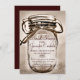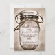 Här är ett unikt inbjudningskort för möhippan för en land brud. De har en rustik land mason burk i fläckbrun sepia för ett antiskt utseende. Mason burk har en fluga bunden runt den. Det här är perfekt för brider som kommer att ha en land stil bröllop eller använda Mason burk i sina dekorationer i bröllop. Denna antika vintage som konserverar burk är perfekt för ett fylkebröllop.