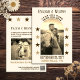 En musikkonsert i land stil bröllop spara datum i sömntoner med ditt foto på framsidan i en båge omgiven av stjärnor. Snyggt för din westerna text för namn och det klassiska land för "spara datumet" och ditt bröllop-datum. Den här moderna besparingen av datumet med en vintages känsla kommer att wow dina gäster. Kortets baksida har ett annat foto, fler stjärnor och rum för ytterligare ett meddelande. Det finns också en QR-kod och textversion av webbplatsen bröllop. All text anpassas av dig. Färg kan anpassas i Design Verktyg.