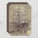 Rustic land inbjudningskort för möhippan har hästskopar, gammal burlap, blommor och champagne.