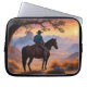 Laptop sleeve med en målning av en cowboy på hästen som förbiser ett vackert landskap vid solnedgången. Snygg för alla som kärlek Mid Väster och cowboys.