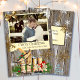 Rustiskt vävt trä med vit, blå och guld snöflingor, hans och hennes cowboystövlar med poinsettias och gräs-bär fotojulkort.