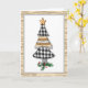 Cute hand plockade Buffalo Plade Julgran på julkortet gräs nål.