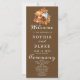 Se till höstens anseende med det här fängslande mörk brunt Bröllopsprogram. Dess moderna och bohemiska utformning visar Fallets quintessentiella inslag - strålande orange och serenvita pumpor, intrikata akorner och en rik tapetik av pulserande orange och grönt löv. Två slående pumpor av orange i själva kärnan kompletterar på ett harmoniskt sätt en vit pumpa med en elegant och bildar ett mittstycke som fångar säsongens innersta väsen. Radiant löv i varierande skuggor av orange och grönt dans runt, och skapar en mesmerierande bakgrund som symboliserar Falls naturskönhet. Programmets omvända sida presenter innehåller viktiga uppgifter om bröllop i en klassisk blandning av svart och grått, med hjälp av ett enkelt blockteckensnitt för att göra det enkelt och enkelt att läsa. Genom att höja kärnan i tillfälle, det pivotala ord Välkommen, Ceremony och Bröllopsfest, är man delikaterat inskriven i ett vackert dekorativt skript, vilket ger upphov till en luft av sofistikering och charm. Det bruna Bröllopsprogrammet i mörken är en kapsling av hösten, blandar sitt förtjusande färg-system och är ett modernt som kompletterar och framhäver det falltemade bröllopens allure.