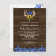 Ohyfsad inbjudan till landsbyggsbröllop med stora hjortar med en bukett av blåblommor, gult solblommor och grönt ferns. Grund i lakan är försedd med blåklockor. **Checka ut min butik för att hitta matchande produkter!