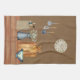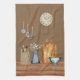 I kökshandduken i land finns en åldras träbak, många köksredskap och köksartiklar, en träbräda, kryddskåp, baby utandningsblommor i en pitcher och en vintage på väggen. Det finns även i vår butik en samordnande påse, en depåhållare och ett ugnscentrum, liksom en annan version av handduken.