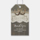 land chic bröllop tackar er märkre med ett par hästskogar, snöre, barwood och baby andedräkt