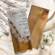 Anpassa den rustiska chicen Land Barn Bröllop Menu med detaljuppgifter om den måltid som du kommer att vid din bröllop-repetitionsmiddag, möhippa luncheon eller giftermål-mottagning, med tillägg av sallad eller första kurs, inträde eller andra kurs och dessert eller tredje kurs. Anpassa den med namnen av brudgummen, platsen och händelsemedatum. Den här charmerande anpassningsbarna Rustic bröllop-menyn har ett fyrfärgat foto av en vintage benvit linnäsduk som är försedd med delikat snöre och brunt frilevande lingträ. Perfekt till paret som har planerat en avslappnad som ännu inte är klassad som lantgård i land, rustik lada eller westernt bröllop.