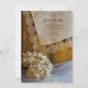 Inbjudan gäster till en före giftermål party som hedrar den brud som ska vara med charmen Land Snöre och Flowers Barn Inbjudningskort för möhippan. Den här avslappnaden, som ändå är klassad anpassningsbar ranch stil Möhippa Inbjudan, har ett fyrkantsfoto av rustiskt bruna linnved, en vintage vit snöre-putsad linnäsduk, torkade blommor, vitpärlhalsband och en blommigt slöja.