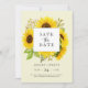 Den här gulten för solrosolja i land är att spara datumkortet är perfekt för ett orusbart bröllop. Den klassiska moderna designen har vackra, ljusa, vattenfärgade vilda blommor med en vintage utomhus sommar eller falltema.