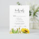 Det här menyvalet för solrosmeny i land är OSA kort för ett bröllop som är rikt. Den klassiska moderna designen har vackra, ljusa, vattenfärgade vilda blommor med en vintage utomhus sommar eller falltema. Svarskortet i bröllop frågar gästerna vilken måltid de vill ha på mottagningen.