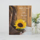 Anpassa den Westerna solrosmenu i Land med uppgifter om den måltid som du kommer att på gården stil eller på temat bröllop brunch, möhippa luncheon eller giftermål genom att lägga till sallad eller första kurs, inlopp eller andra kurs och dessert eller tredje kurs. Den här charmerande personligt bröllp-menyn innehåller ett blommigt foto av en gult solrosolja, en brunt dukboja och ett fridlyst lingträ. Inspektion av perfekt för en avslappnad av party firande-händelsen i ladugården.