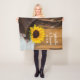 Anpassa charmen och mysiga Land Solros Blanket i Westerna Bröllop med namn på briden och brudgummen och ceremonin i giftermål för att skapa en varaktig keepsaké från deras lantgård i stil eller på stamtemadjur. Den här mjuka filten bröllop med glatt chic har ett foto av en blommigt av ett par bruna cowboystövlar med en blommar av gult solrosblomma med en baksida av barrträ från frilevande laduar.