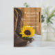 Anpassa det Westerna svarskortet för kvaint solrossolrossolrossystemet i Land med det specifika svarsdatumet för giftermål. De här charmerande anpassningsbarna rustic chic ranch stil bröllop r.s.v.p.-korten har ett fyrkantigt blommigt foto av bruna cowboystövlar, blommar av solrosor av gult och lingträ på vit satin.