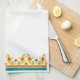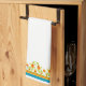 Ett Tea Towel eller Kitchen Towel, med gräns av Pot Marigold-blommor, top och grund. Del av insamlingen "Marigold Medley" i Posh & Painterly