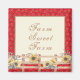 Jordbrukshus/land-matad magnet med vattenfärgade solblommor på rustiska staket och röd bandanbakgrund. Anpassadet "Farm Sweet Farm" kan vara personlig.