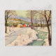 Fin vintage illustrerar en solig och snönära väg med träd, som går nära land och som går i huset och i ladugården i avstånd. Perfekt för en anteckning eller till och med ett julkort.