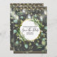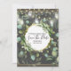 En underbar och levande illustration med en eukalyptus-löv-rand som vilar på en söt ljusblå trärnbakgrund med faux mousserande sträng ljus och mason burk över den mot en mörk grått-bakgrund. Det finns mallar både fram och tillbaka som du kan anpassa. Dessa är idealiska för att land ska kunna falla/hösten, sommaren, vår eller vintern "spara datummeddelanden". Dessa lyxiga och elegant platta lodräna kommer att glädja dina gäster.