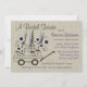 Rustic land-vagnen med burk fullt av blommor över utseendet av inbjudningskort för möhippan som faller under spinnet. Anpassa möhippa eller tillfälle.