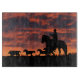 Det här är en fantastisk styckningsbräda med en cowboyhatt i solnedgången med en flock av vild hästar i bakgrunden. Ett underbart tillägg till vilket land-kök som helst.