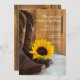 Inbjudan gäster till er ranch stil firande med avslappnaden ännu i Land Westerna solrosoljeinbjudan till Mors dag Brunch. Denna charmerande frukost eller luncheon inbjudan i anpassningsbar har ett foto av ett par bruna cowboystövlar och gult blommar av solrosor med en rustik bakgrund av bruna lingor. Finns som en utskriven inbjudan att skicka eller som en digital nedladdning för att enkelt kunna dela digitalt online.